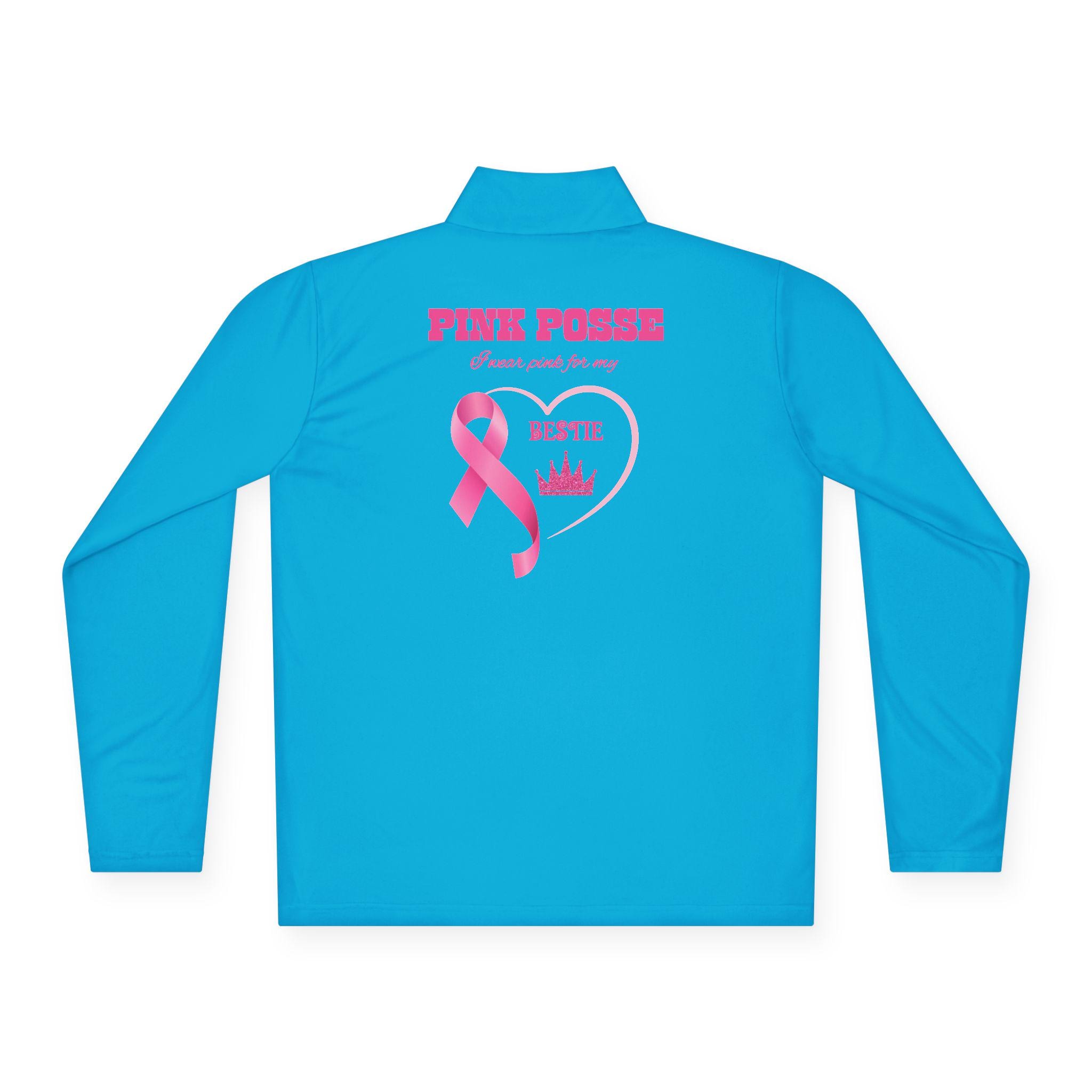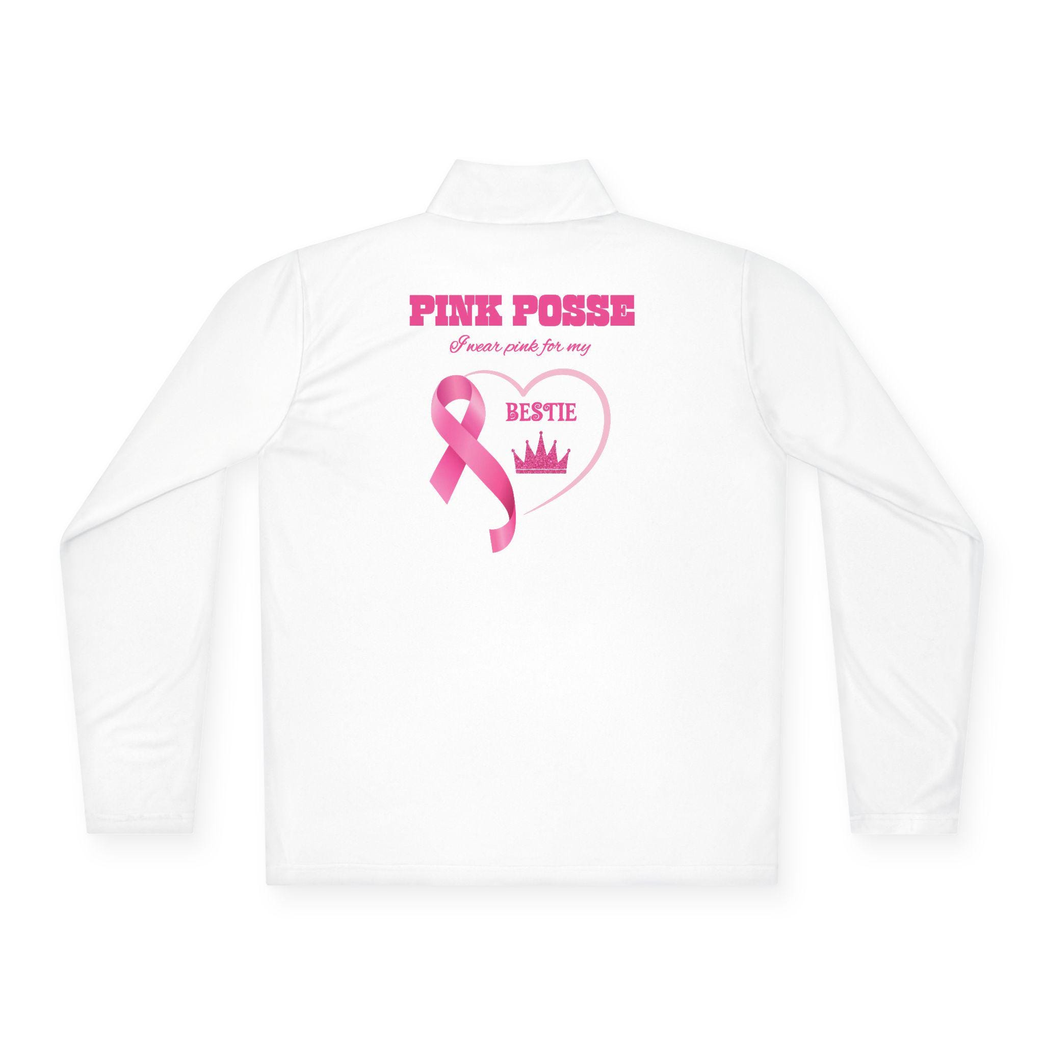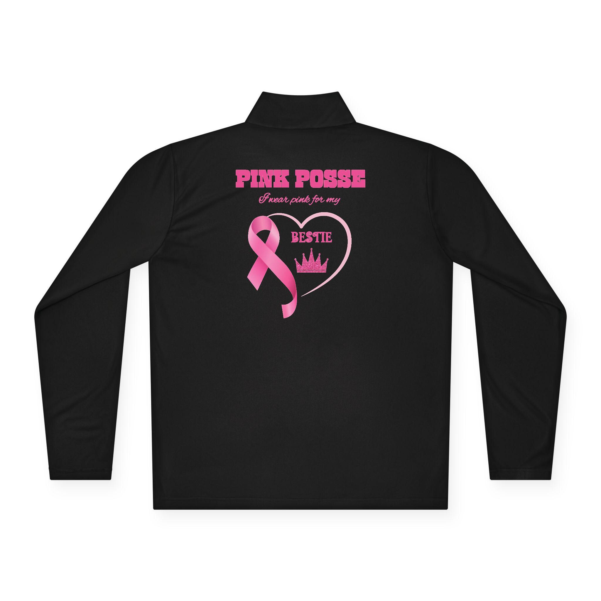 Stand strong and show support with this Your Fight Is Not Alone supporter pullover. On the back, it reads Pink Posse – I Wear Pink for Bestie, making it the perfect shirt for family members, friends, and loved ones to wear during Breast Cancer Awareness Month, fundraising walks, or everyday solidarity.