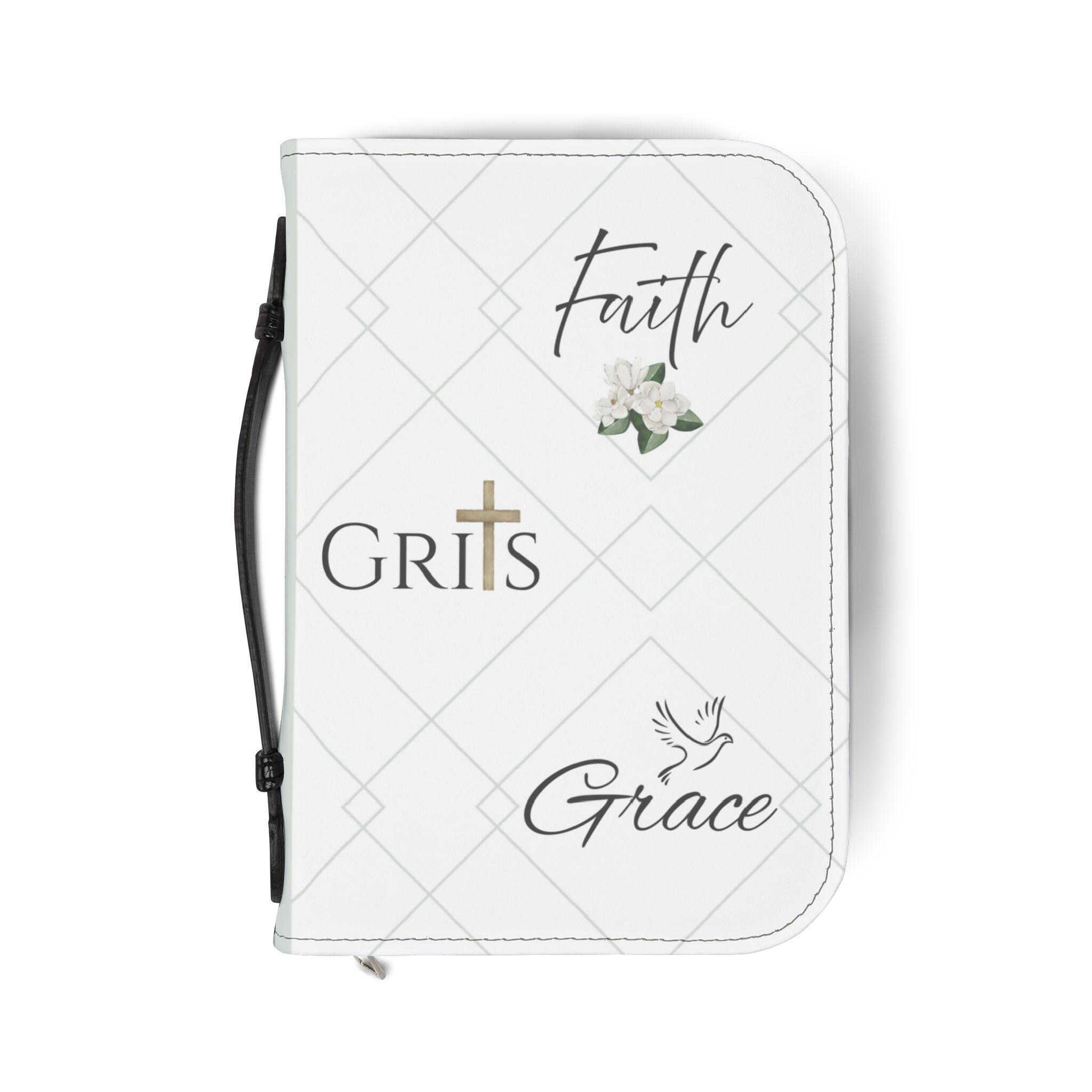 Carry your Bible with charm, sass, and faith. This Faith, Grits & Grace Bible cover blends Southern sweetness with spiritual strength — and features the beloved verse “I can do everything through him who strengthens me” (Philippians 4:13) on the back.